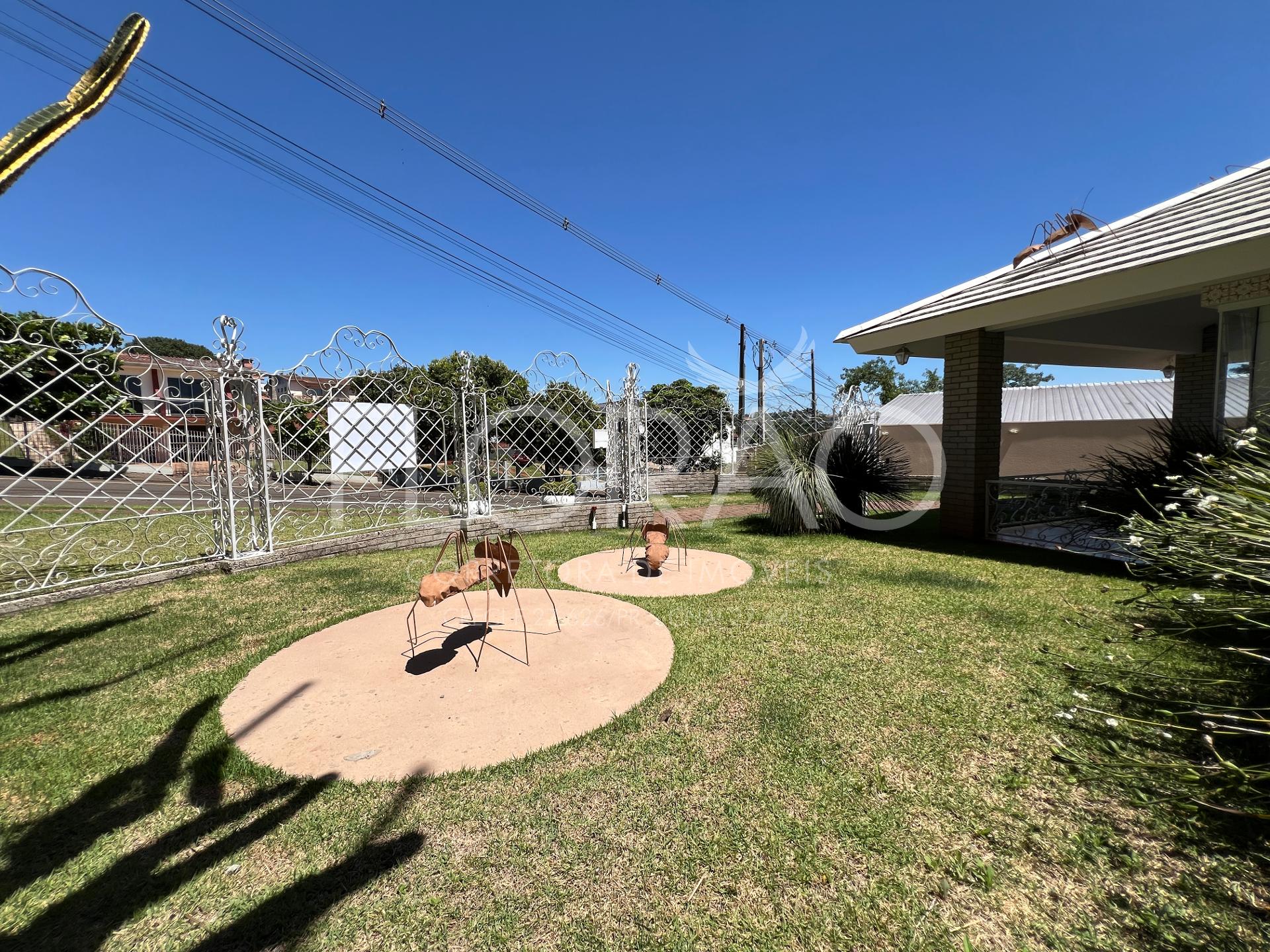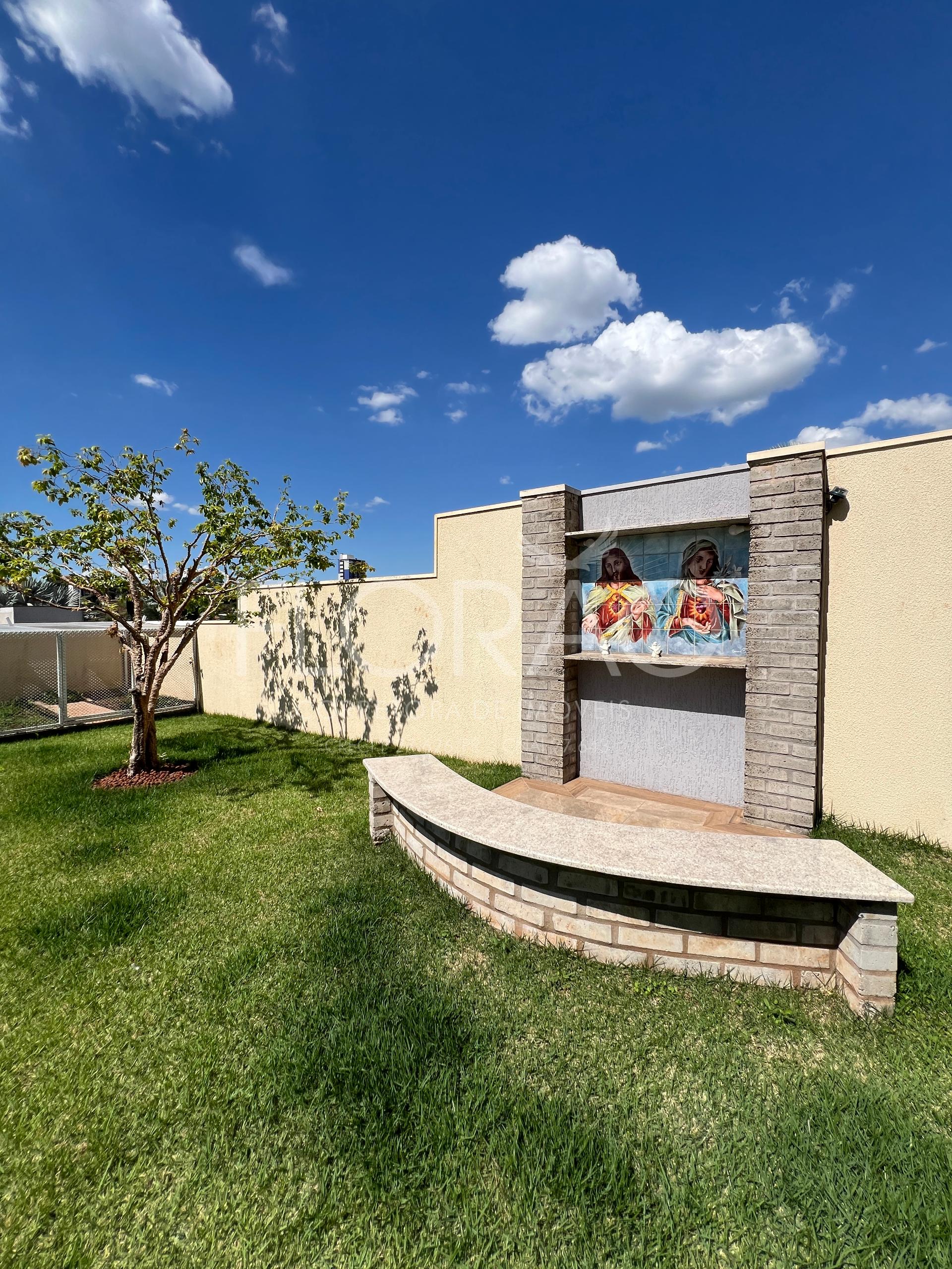 1º PISO/TÉRREO: 01 sala de estar/gesso acústico + painel + TV instalada + lustre + arandelas pendentes instaladas vista espetacular para parte externa do jardim, 01 sala de jantar, 01 lavabo, 01 lavanderia, 01 espaço gourmet completo/churras a carvão + espeto rotativo, 01 despensa ampla, 01 cozinha mobiliada, 01 escritório mobiliado, 01 BWC social/parte externa, piscina com aquecimento solar/iluminação LED, 01 casinha de maquinas/piscina, 01 sala de jogos, 01 canil coberto e fechado. Jardins/espaços - 01 Oratório com mural do Sagrado Coração de Jesus e Maria - espaço nos fundos do imóvel um convite para desacelerar, 01 jardins/espaços na frente do imóvel obra de arte/pintura + formigas de metal + banco de madeira tratada.
